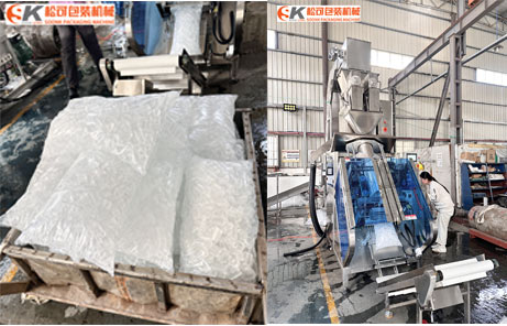 In response to the customer’s needs, we have carried out precise equipment selection and configuration. First of all, combined with the density and volume characteristics of tube ice, and through the actual measurement and adaptation of packaging bags, we determined to select the SK-L780 packaging machine host as the core equipment. This model is originally suitable for 5-10kg tube ice packaging with a reasonable bag size match. For the customer’s secondary 3kg packaging needs, it can be adapted by adjusting the bag size. Although the appearance is slightly affected, it does not affect the packaging effect and use at all, and can fully meet the customer’s diversified needs. This is also a classic application and selection scheme of this model in the 5-10kg tube ice packaging scenario.